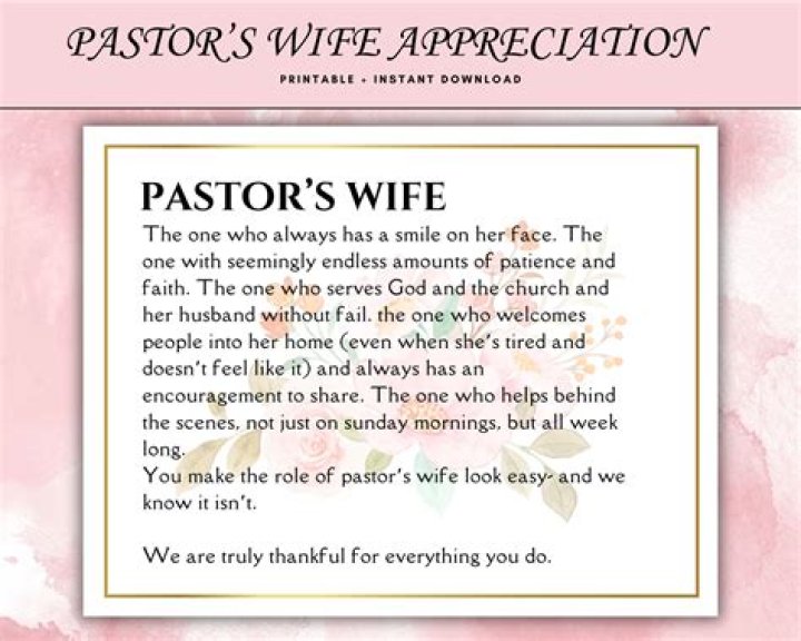Being a pastor's wife can be a challenging and demanding role, often involving long hours, public scrutiny and the need to support her husband and family while also managing her own responsibilities.