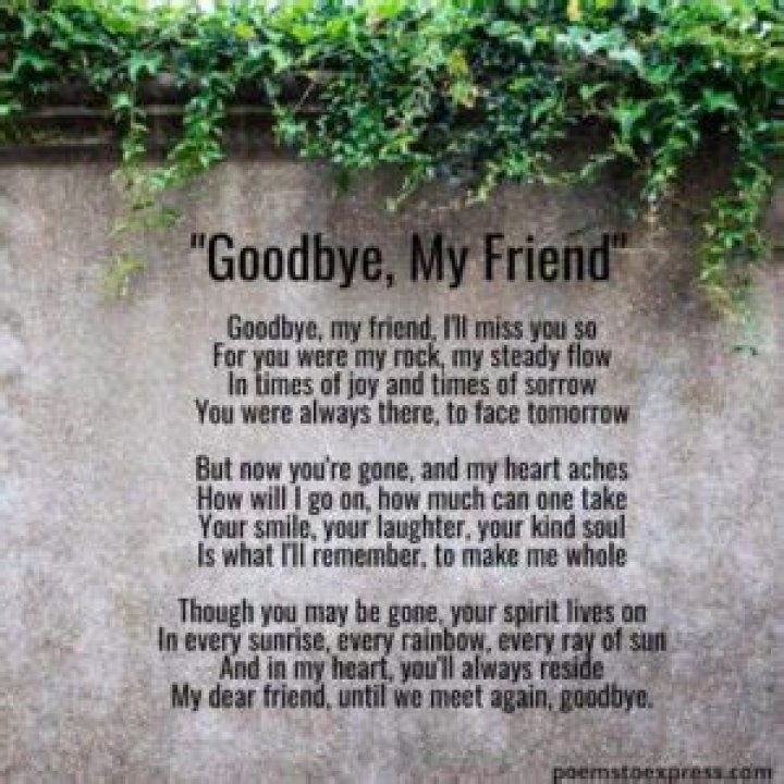 - Loss of companionship: Sad friend poems often explore the loss of companionship that is felt when a close friend is gone. Friends are often our confidants, our sources of support, and our partners in crime. Losing a close friend can feel like losing a part of ourselves.