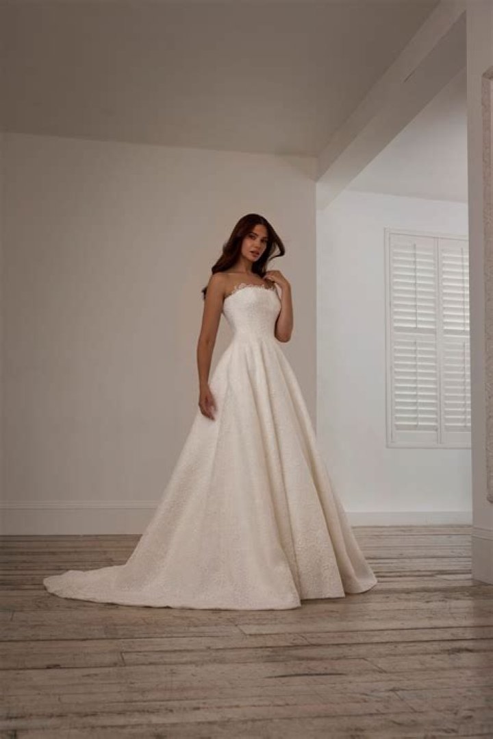 The dress was first seen in the 2011 film Twilight: Breaking Dawn - Part 1. In the film, Bella Swan (played by Kristen Stewart) wears the dress when she marries Edward Cullen (played by Robert Pattinson). The dress has since become a popular choice for brides who are looking for a classic and elegant wedding gown.